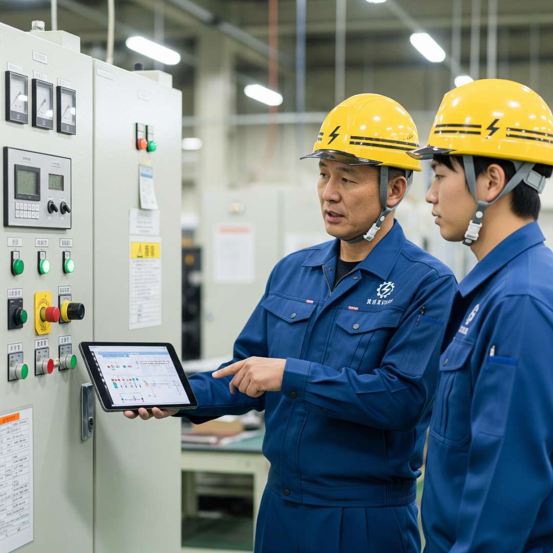 私たち小峰電気では、どのような現場でも、必ず2名から3名のチームで作業を行う体制をとっています。これは、経験豊富な技術者がすぐ隣で指導できるという教育的な意味合いはもちろん、お互いが安全を確かめ合うためのとても大切な安全対策の一つです。