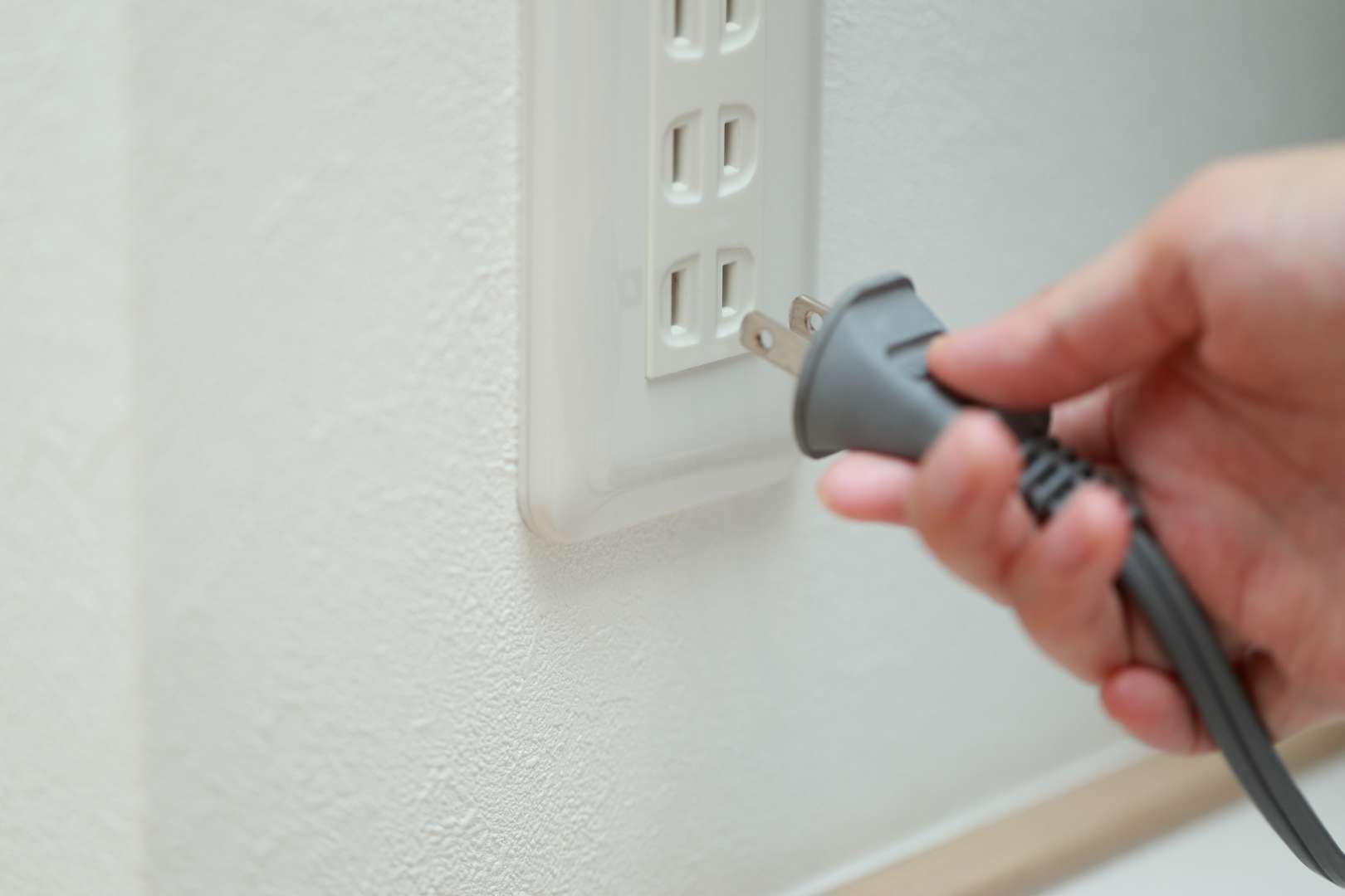 焦げや火花を発見した際の安全な対処法として、まずは家の電気を管理しているブレーカーを落としてください。電気が流れたまま焦げたプラグ(コンセントに挿す部分)に素手で触れると、感電する事故に繋がる可能性があります。